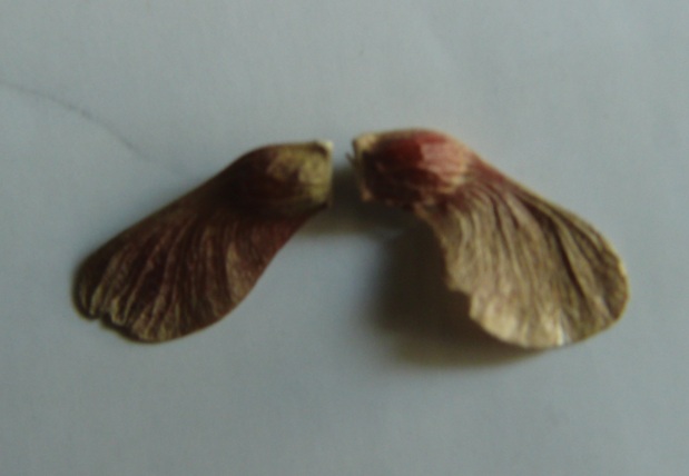 ■画像01 :20251121 モミジの種子 種子はプロペラのような形をしており風に乗って 遠くへ飛んでゆきます。画像では左右が離れておりますが実際はつながっております |