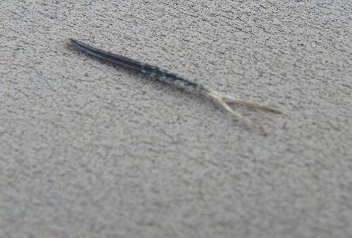 ■画像 b :20251127 コセイダングサ種子の単体 この種子が大変厄介者です。草むらを歩くと2本のとげが衣服に刺さりなかなか取れません。 |